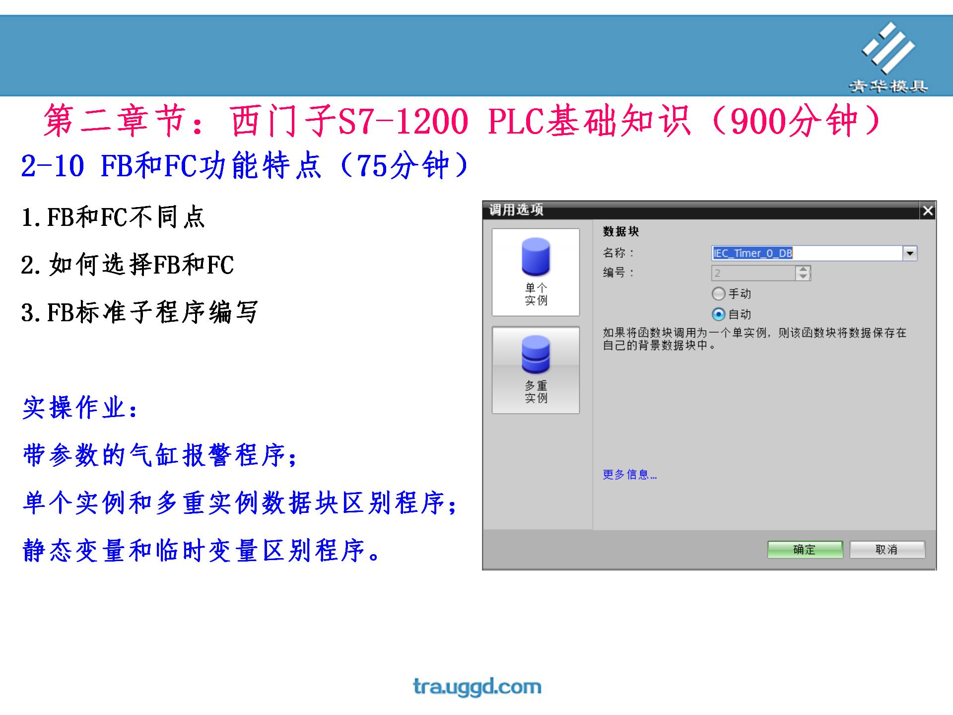 • 首页>课程大纲 >PLC编程>PLC编程第一阶段 >2-10 FB和FC功能特点